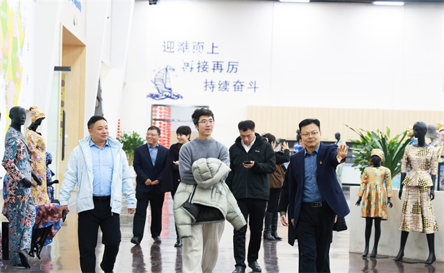 九識智能一行先后實地參觀了公司智云中心、檢測中心、綜合辦公區、服裝面料公司、花布公司、家紡公司、創意中心、研究院、花布車間、立體庫、家紡成品車間等區域,詳細了解了公司在智能化生產運營、質量管控體系、研發創新平臺及產業布局等方面的發展情況。
